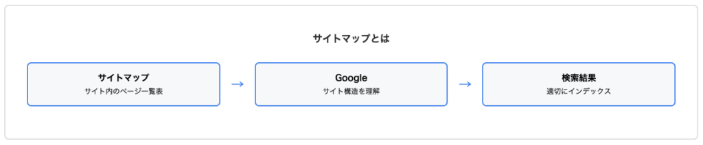 サイトマップとは、「サイト内のページ一覧表」のようなもので、Googleにサイト構造を教えるファイルです。