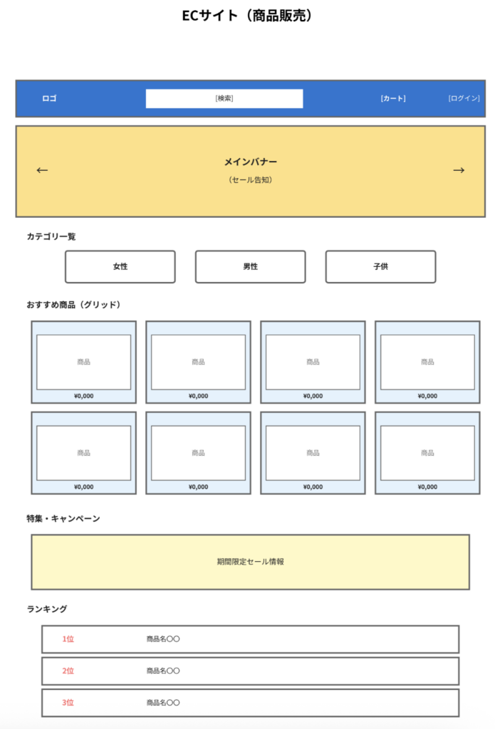 ![ワイヤーフレームの例:シンプルな線と枠で構成された設計図のイメージ]