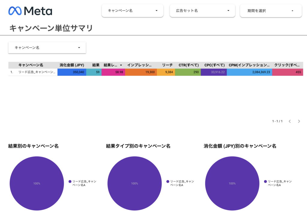 - 1つのキャンペーン「リード広告_キャンペーン名A」のみ