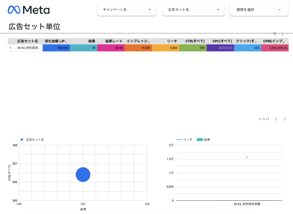 複数の広告セットがある場合、最もコスパの良いターゲティングを一目で特定できます。