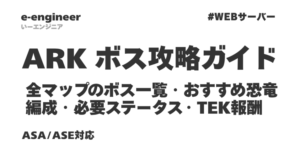 この記事では、ARKの全マップに登場するボスの一覧、各ボスの攻略に必要な恐竜編成と目安ステータス、アーティファクトと貢物の入手場所、TEKエングラムの報酬リスト、そしてボス攻略のおすすめ順番を解説します。